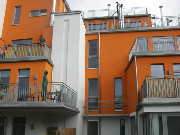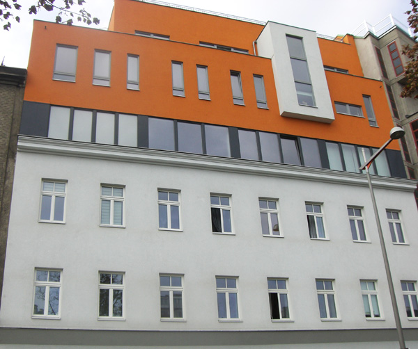 Das dreigeschossige Gründerzeithaus befand sich in einem problematischen Zustand. Nach jahrelangen Bemühungen konnte ein umfassendes Sanierungsvorhaben umgesetzt werden, dass eine umgehende Wohnungsverbesserung, auch eine Aufstockung um zwei Vollgeschosse und ein Terrassengeschoss vorsah. Die Nutzfläche des Althauses beträgt rd. 909 m², die Nutzfläche der neuen Geschosse rd. 158 m².