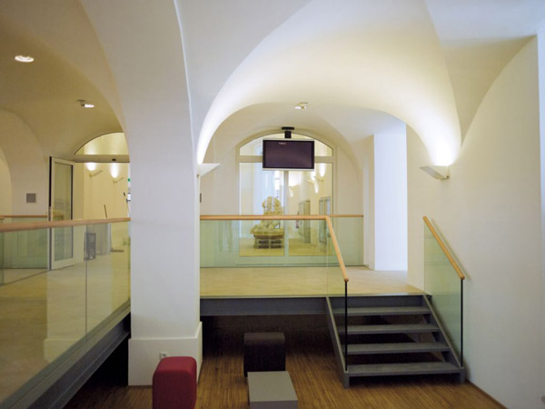 ![]() Tagungszentrum Schönbrunn – Apothekertrakt Sanierung, Revitalisierung, 2008 Die architektonische Konzeption dieser Dienstleistungseinrichtung beruht auf der verfeinerten Kultur dieses Ortes als Teil der Gesamtanlage eines Weltkulturerbes. Der Apothekertrakt bildet zusammen mit der benachbarten Orangerie, dem Orangeriegarten, dem Apothekerhof und dem Spitzhof ein bauliches Kontinuum. Gemeinsam repräsentieren sie mit ihren differenzierten räumlichen Sequenzen eine gestalterisch und emotional erlebbare Vielfalt, die den zeitgemäßen Anforderungen an ein modernes Seminarzentrum zusätzlich unverwechselbare spezifische Qualitäten verleihen. ![]() Für die Positionierung als Dienstleistungszentrum konnten Bereiche mit hoher Erlebnis- und Gestaltqualität ausgewiesen werden. Die Thematisierung der inneren Erschließungswege und die Intensivierung des Freiraumbezuges sind Gegenstand einer architektonischen Interpretation und Intervention. Der Seminarteilnehmer wird durch die Vernetzung der vielgestaltigen Außenanlagen mit dem großzügigen Raumangebot in dem architekturhistorisch einzigartigen Ambiente nachhaltig verwöhnt. ![]()